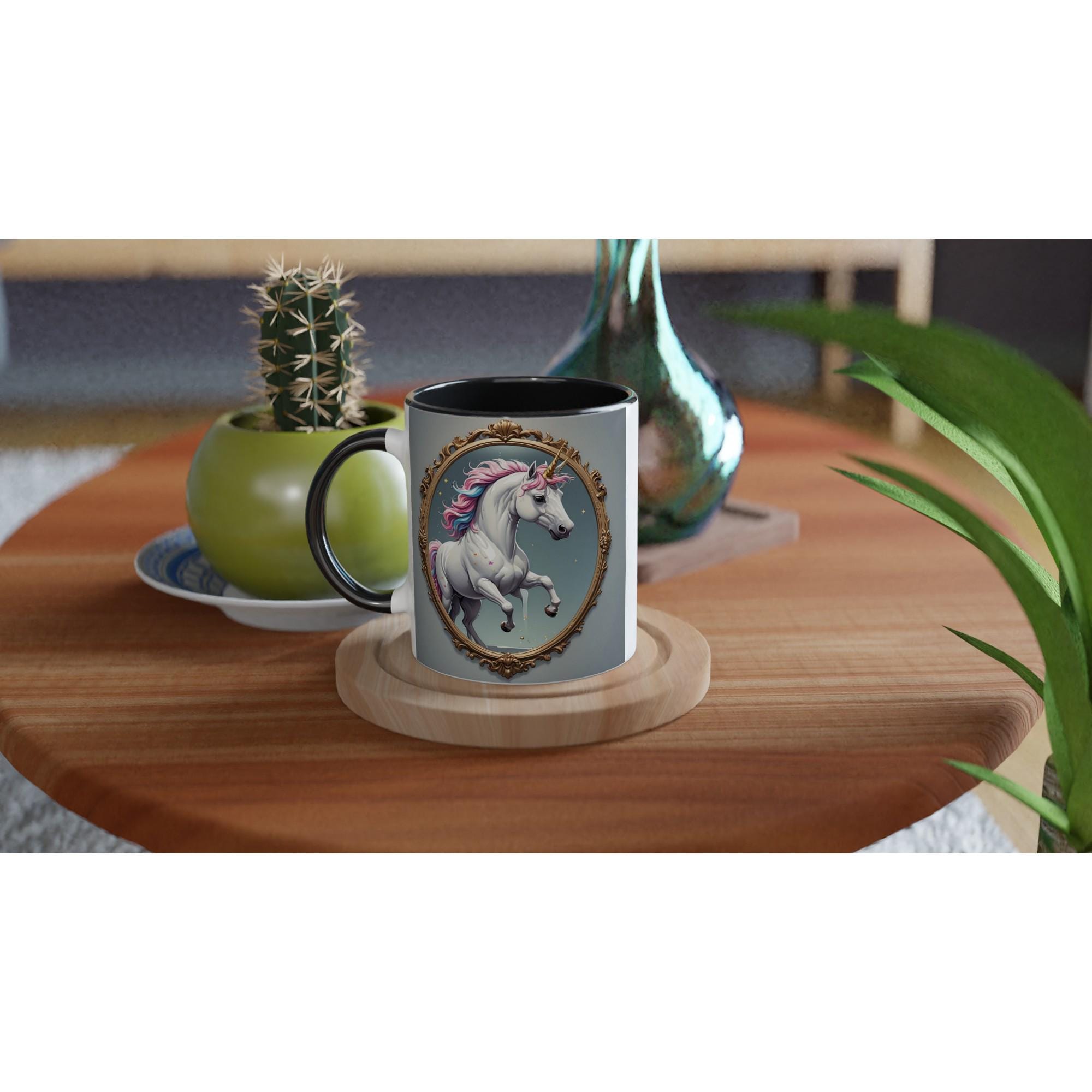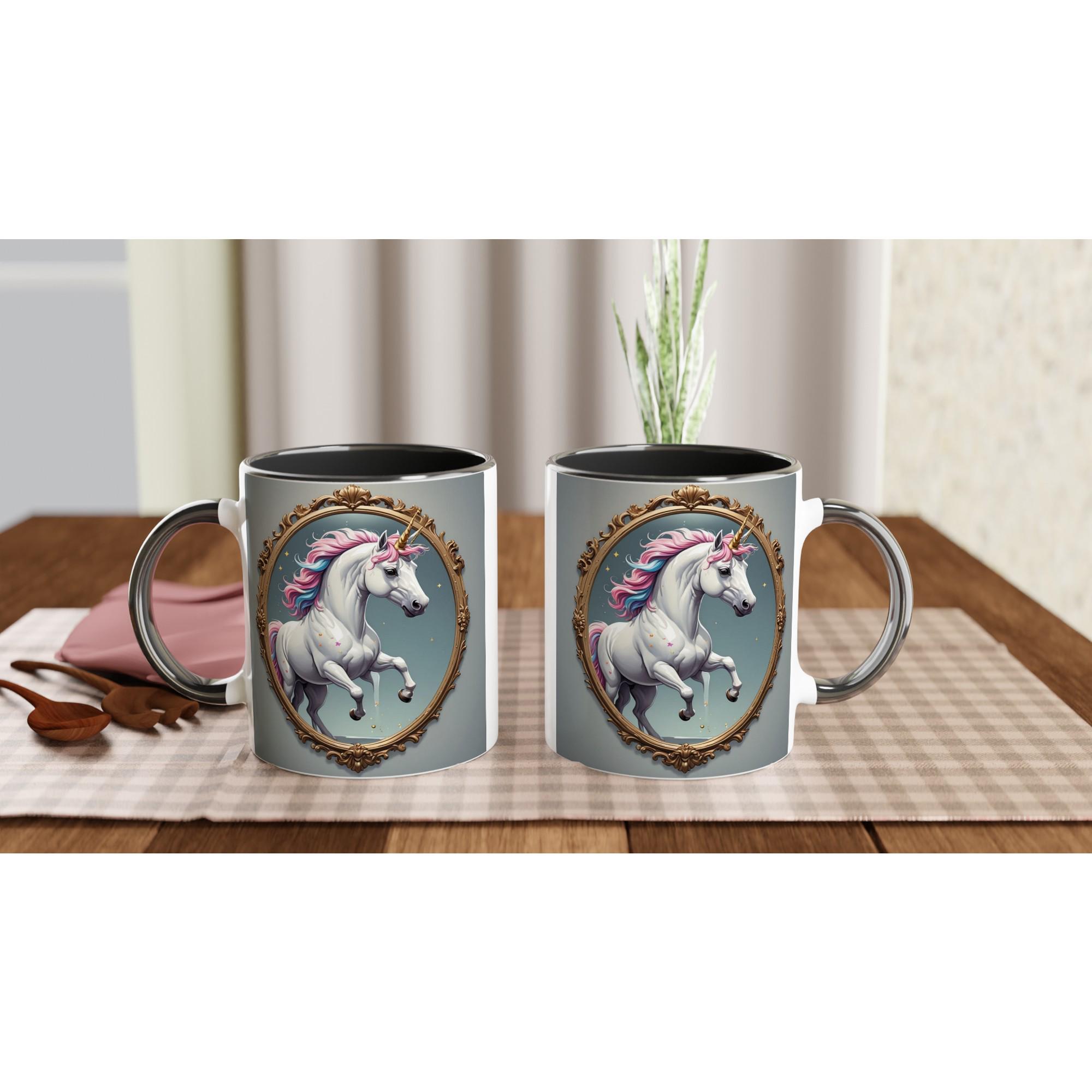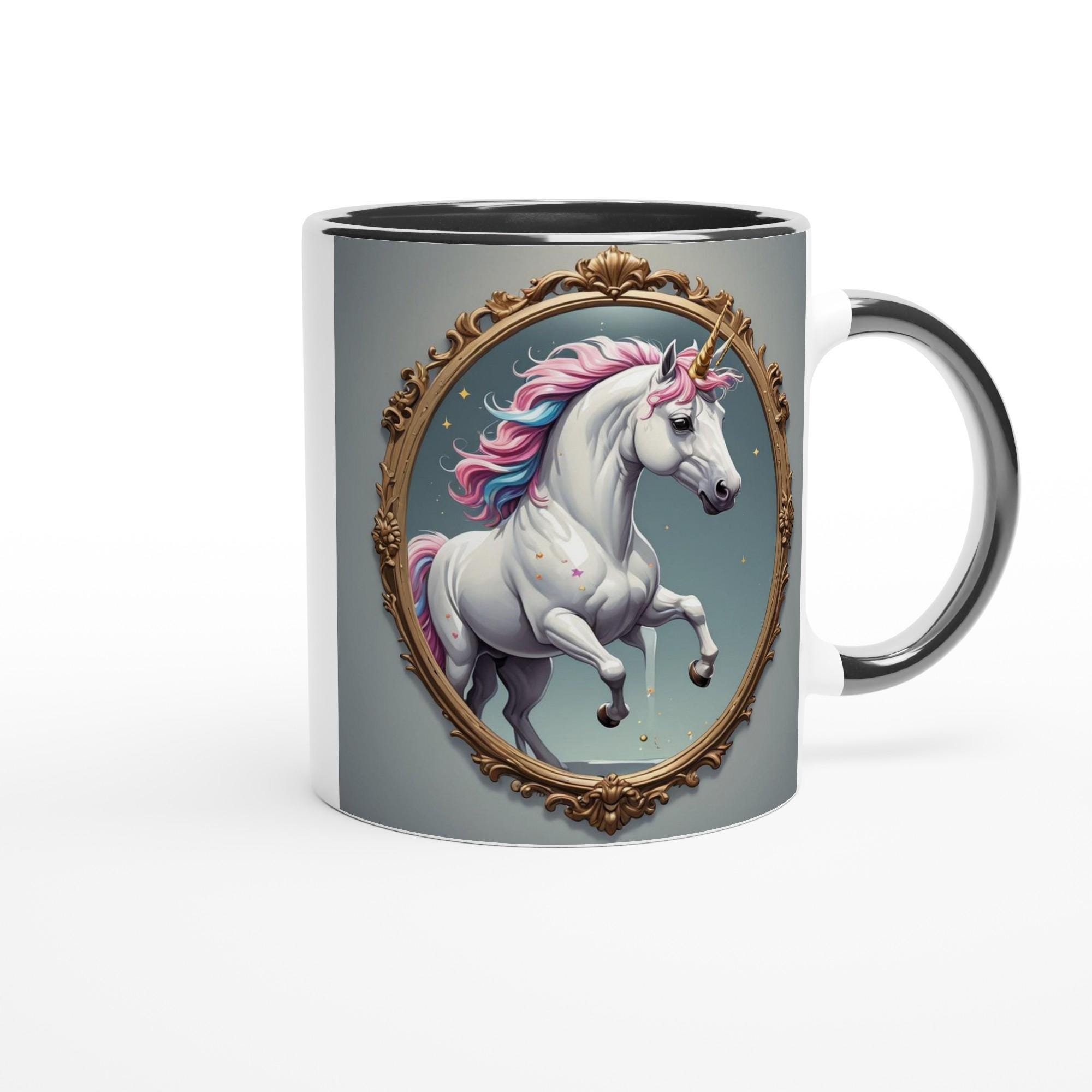 🦄 White Mug – Bright, elegant, and timeless. The glossy white ceramic makes the vibrant unicorn artwork shine in soft, luminous tones.