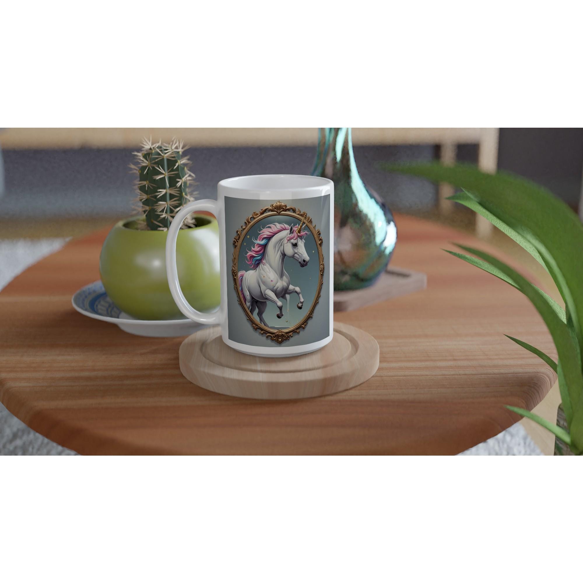 Ethereal Dream – Surreal Unicorn White Mug (15oz) | Magical Fantasy Coffee Cup | Dreamlike Mythical Design | Gift for Unicorn Lovers