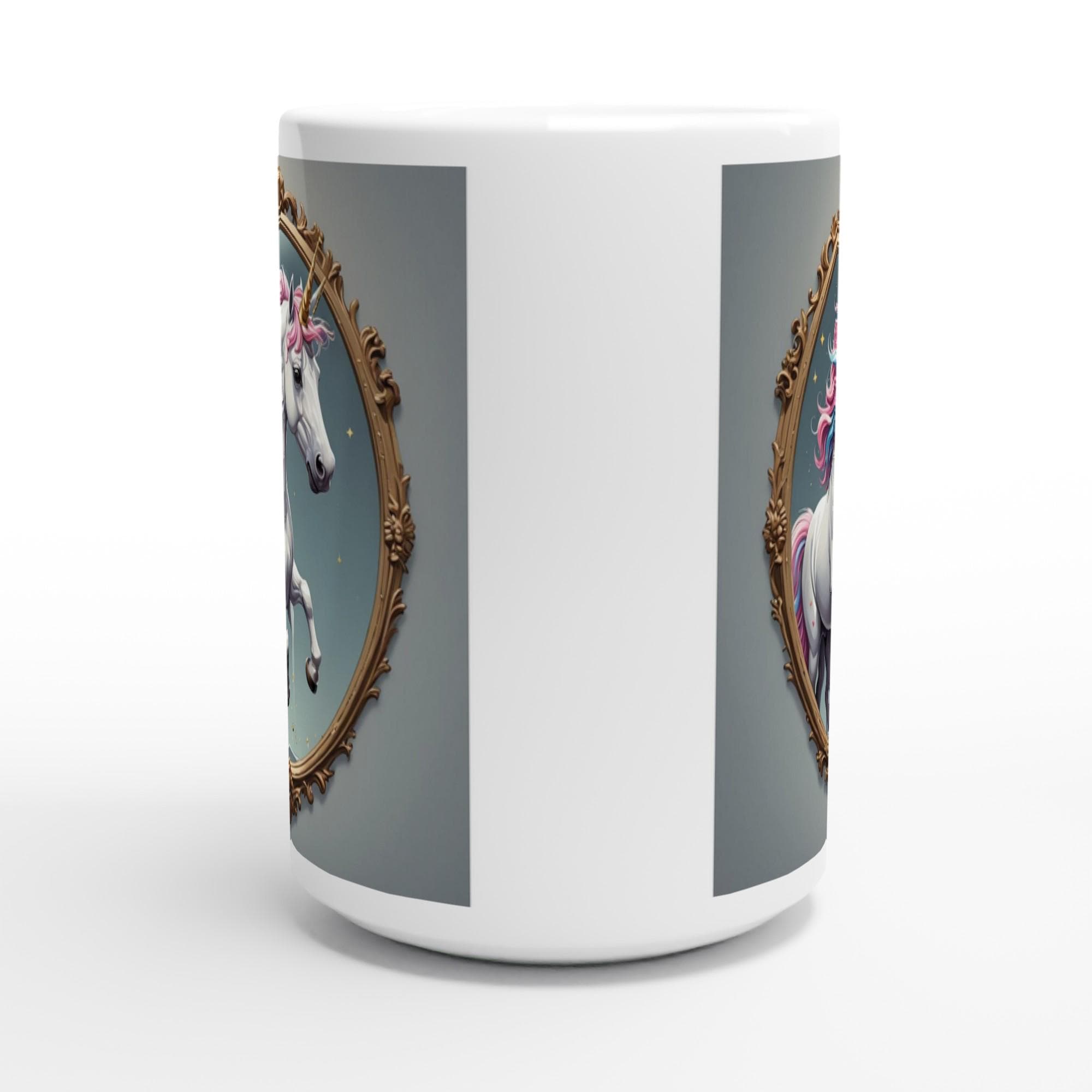 🦄 White Mug – Classic and luminous. The glossy white ceramic highlights the vibrant unicorn artwork with soft, radiant tones.