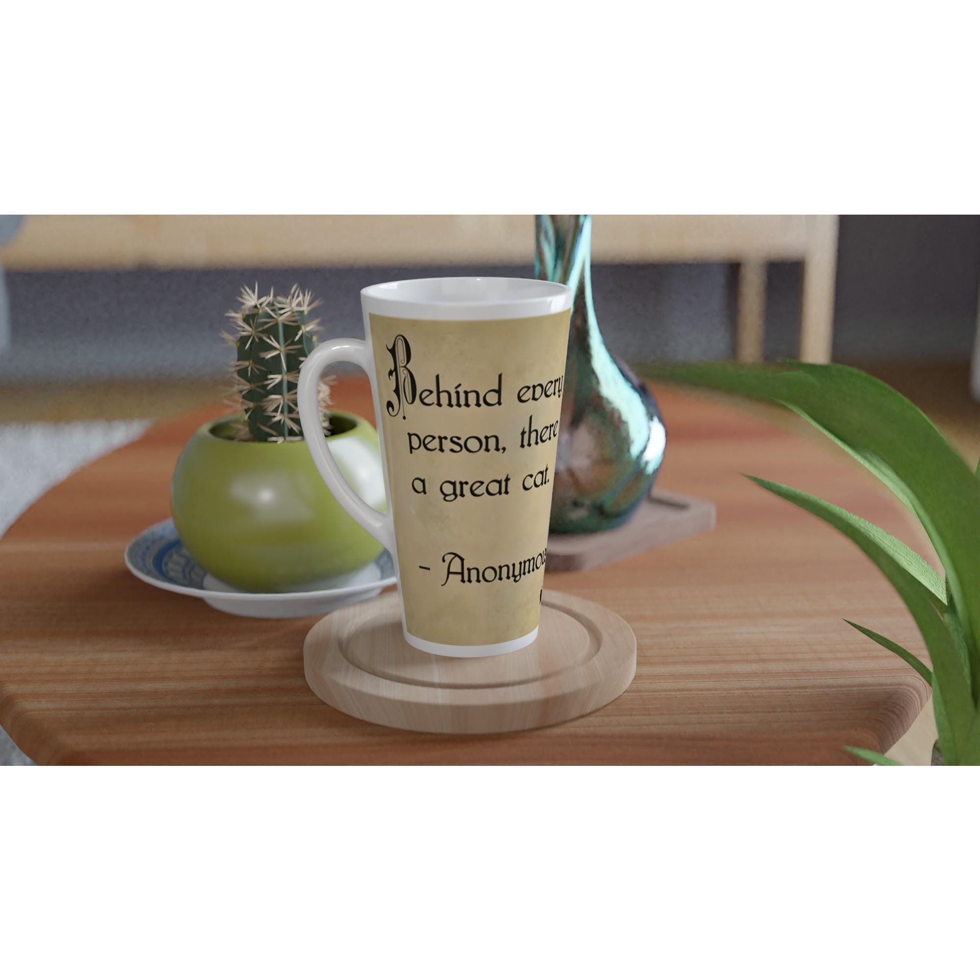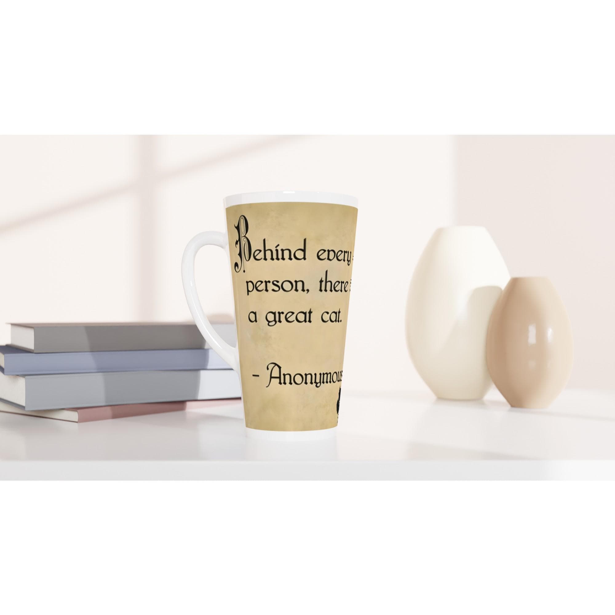 Paw-sitively Purr-fect Latte Mug - "Behind Every Great Person, There Is a Great Cat" - Funny Gift for Cat Lovers