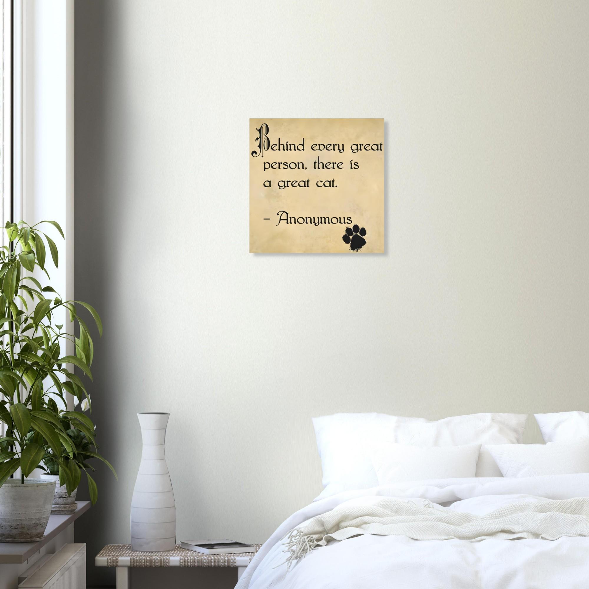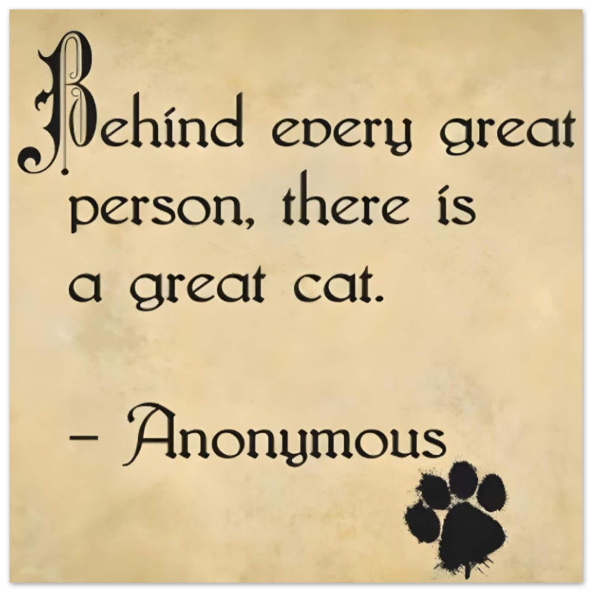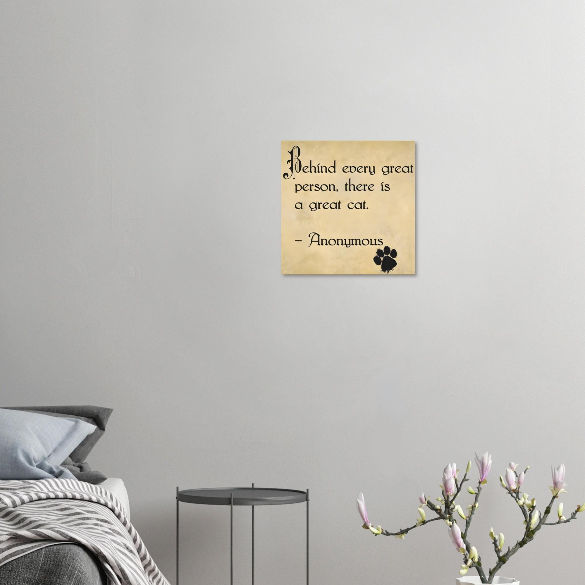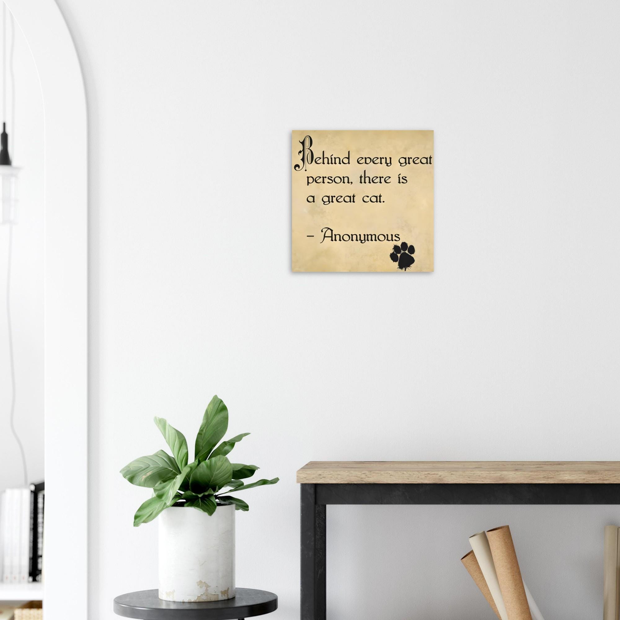 This premium matte paper poster features the whimsical quote “Behind every great person, there’s a great cat” and comes in three different sizes to perfectly fit your wall.