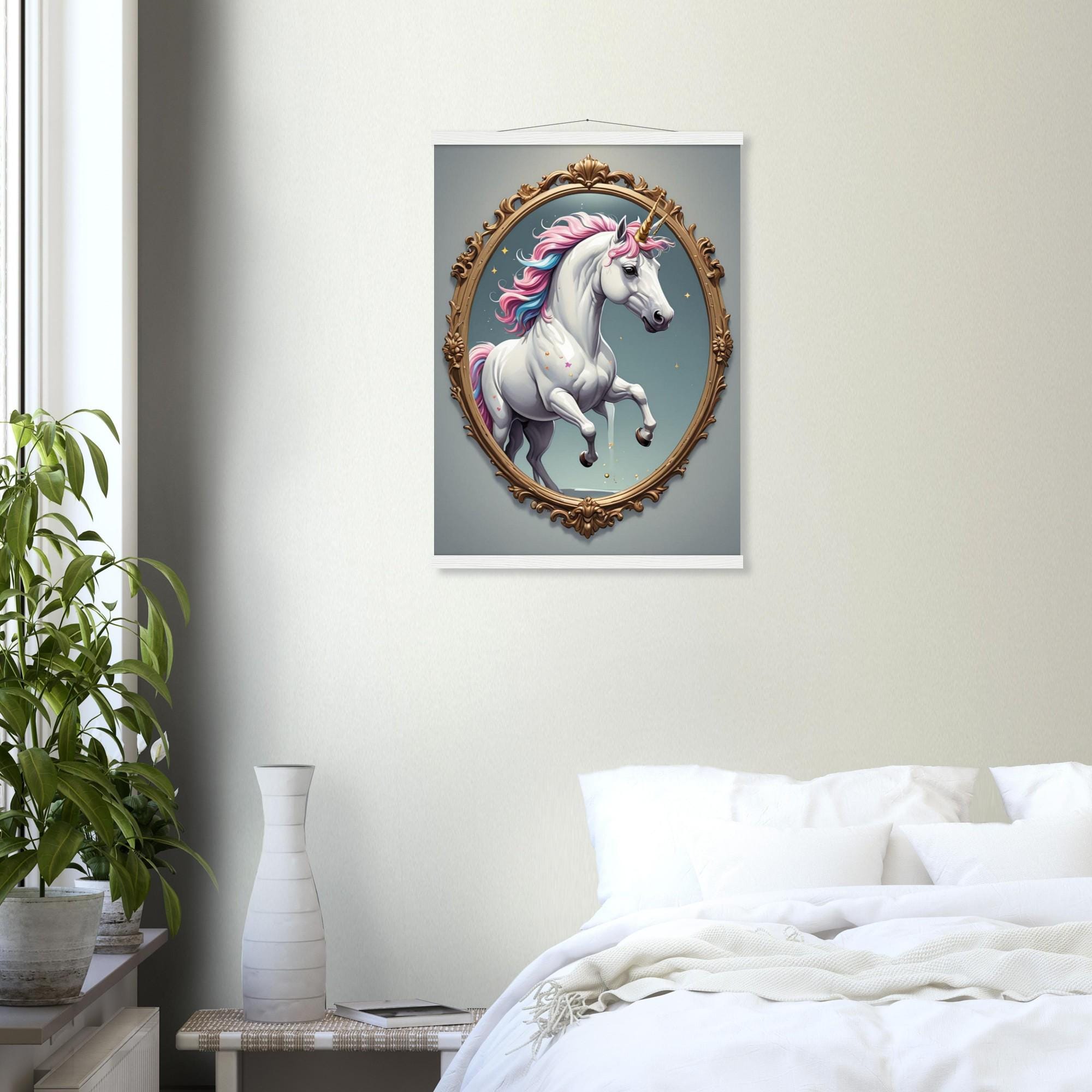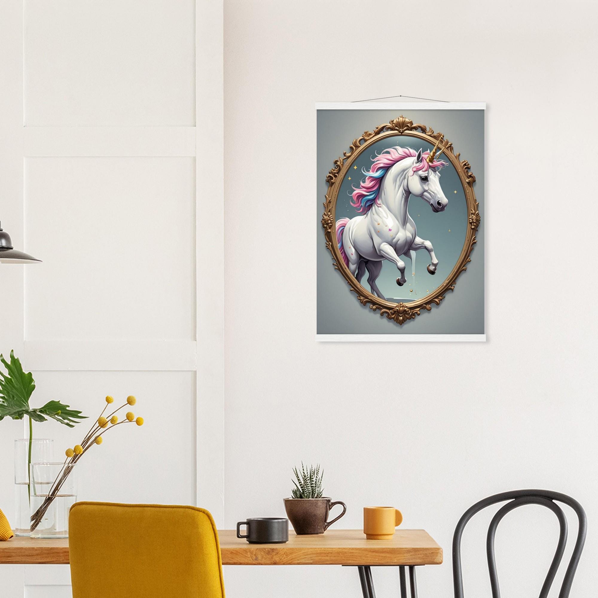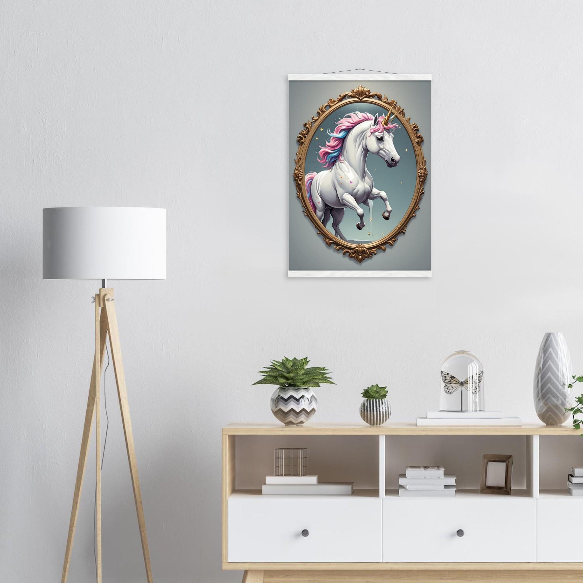 Bring a touch of magic to any room with our Surrealistic Unicorn Mirror Poster, available with a light or dark wooden magnetic hanger. Perfect for nurseries, playrooms, or any creative space, this whimsical poster sparks imagination and adds a dreamy, enchanting vibe.