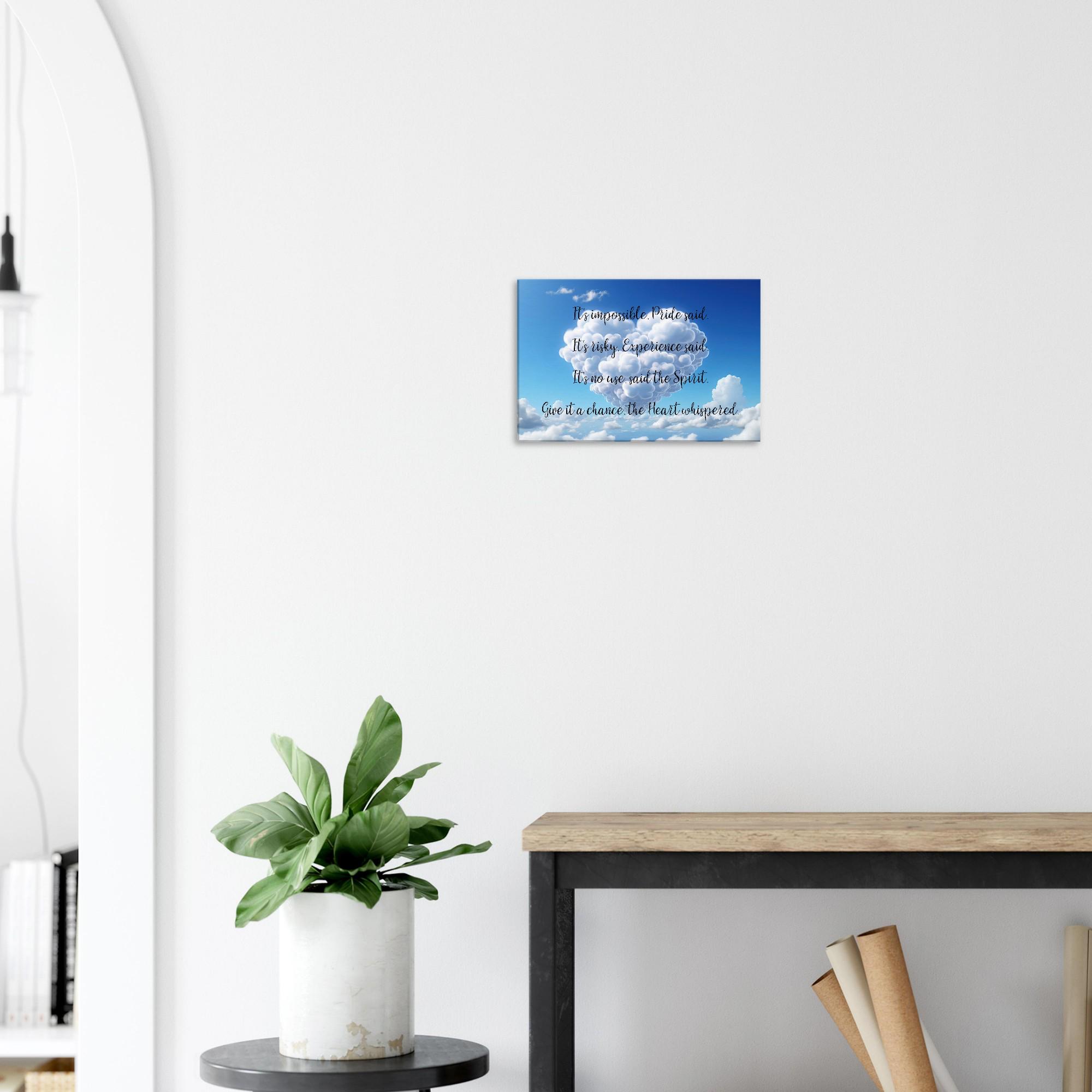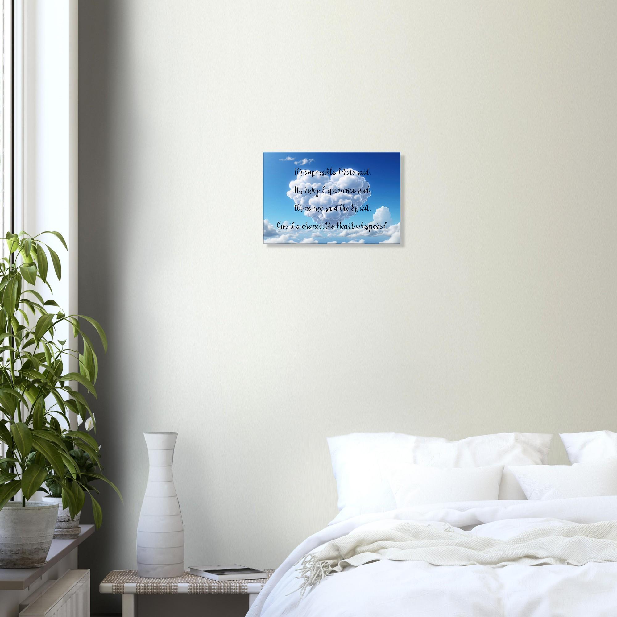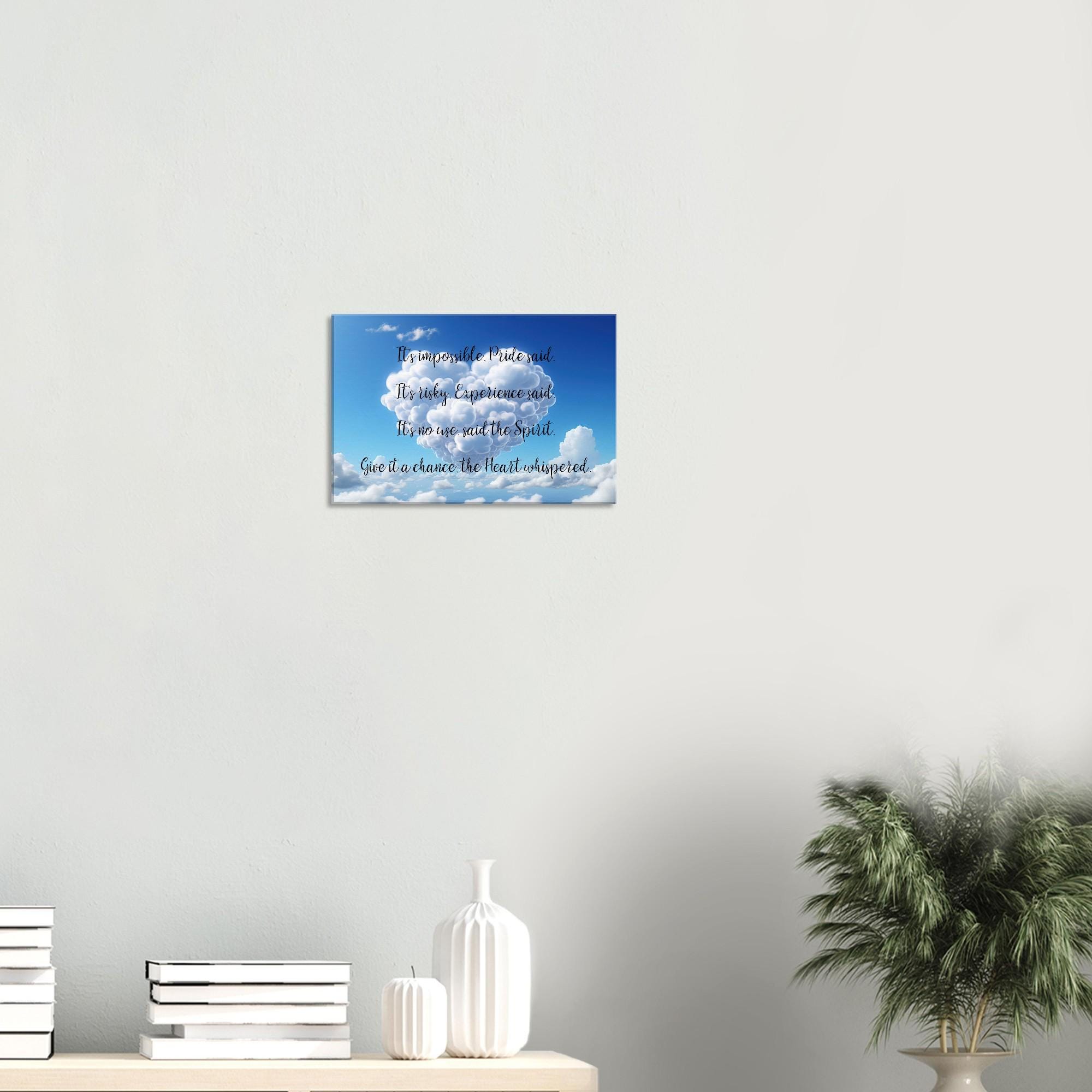 Bring a touch of inspiration into your space with our striking canvas print featuring the motivational phrase 'Give It A Try.' This exquisite wall art not only uplifts your spirits but also enhances your home or office decor, making it the perfect addition for those seeking positivity. The canvas is made with responsibly sourced FSC-certified wood stretcher bars and a cotton-polyester blend, boasting enhanced texture and timeless beauty. Available in both slim (2cm) and thick (4cm) options, you can choose the perfect fit for your wall space. With an astounding range of 26 sizes, it caters to all preferences, whether you're in the US, Canada, or anywhere else in the world. Plus, each purchase includes a hanging kit tailored to your region, ensuring effortless display. Whether you’re looking to motivate yourself or searching for a thoughtful gift for a loved one, this canvas print is a beautiful reminder to embrace challenges and pursue your dreams. Order yours today and make your space a little more inspiring!