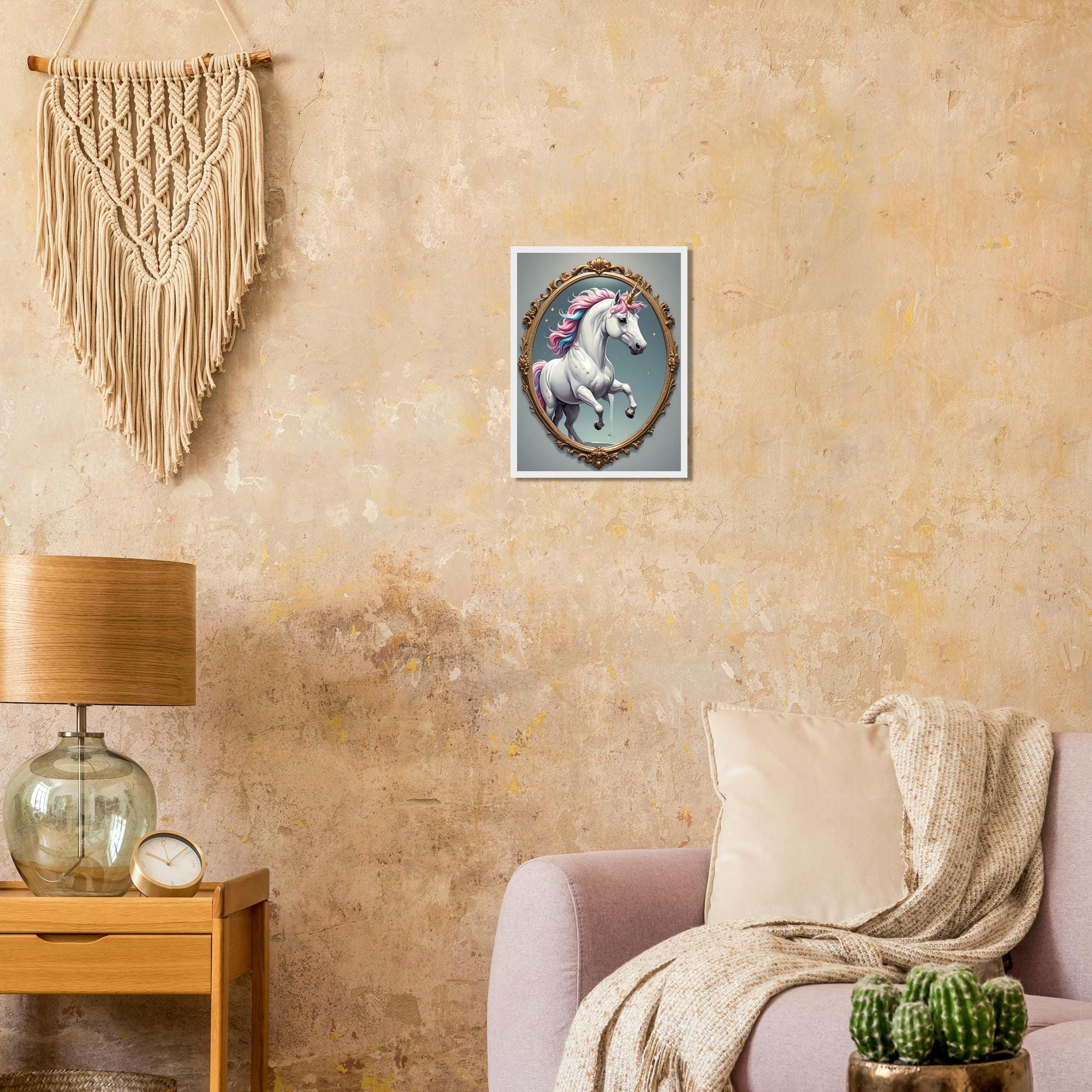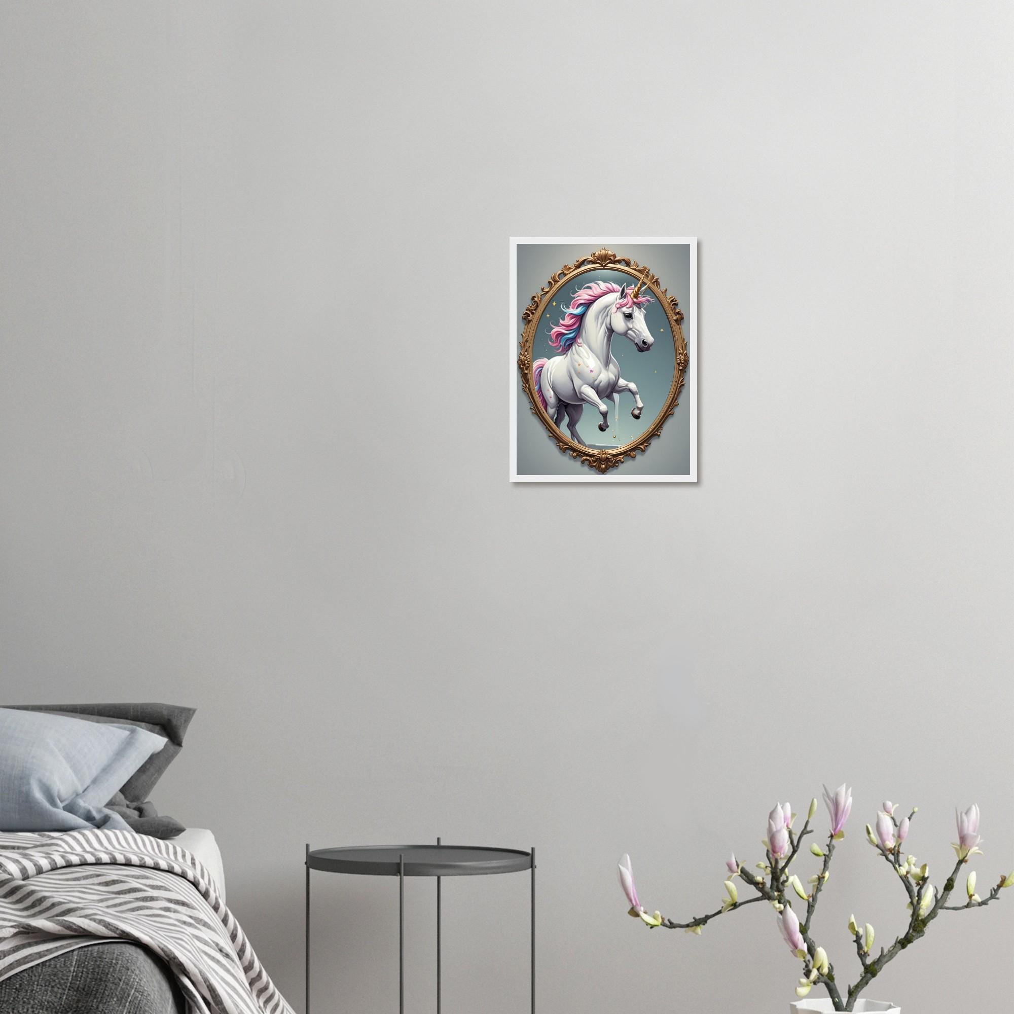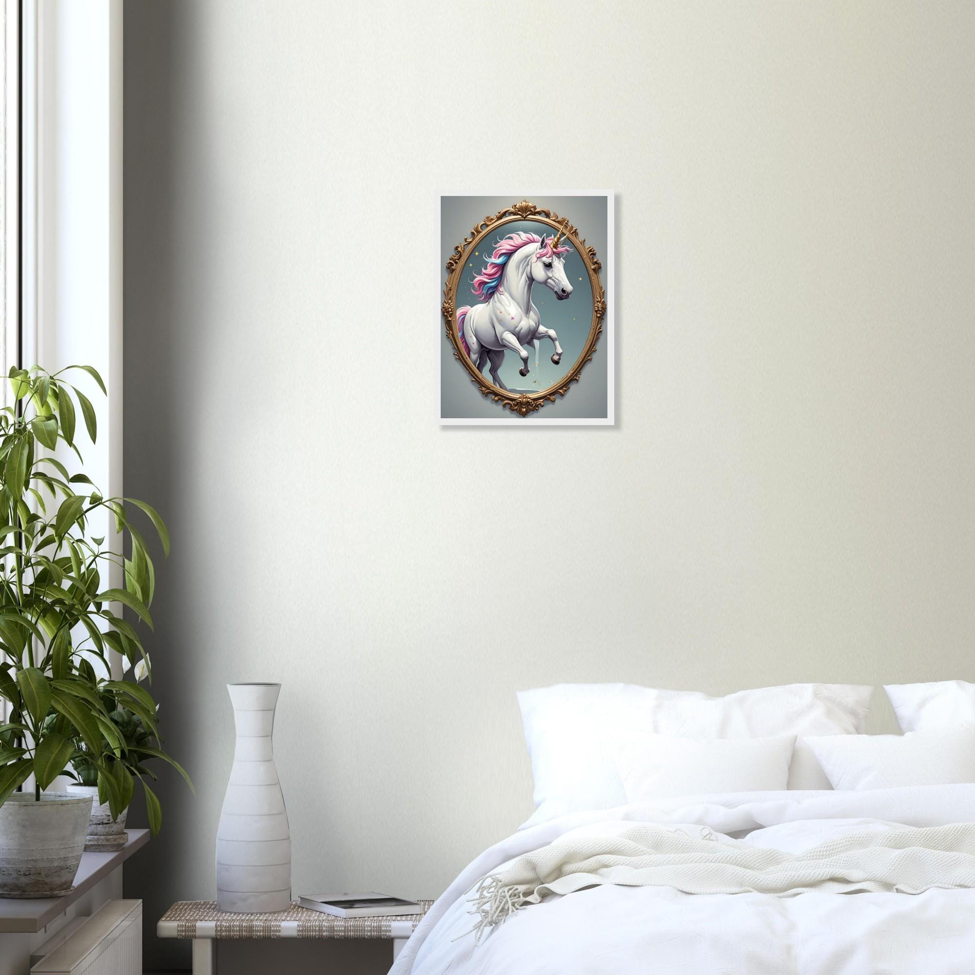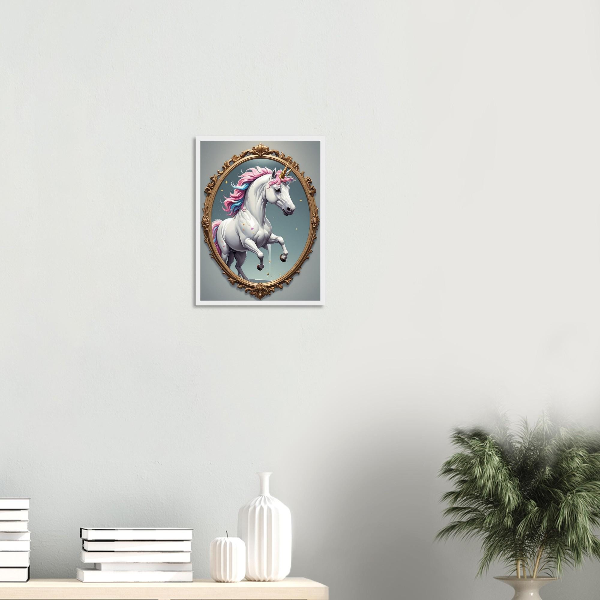🖼️ Surrealistic Unicorn Poster – Premium Wooden Frame, Ready to Hang