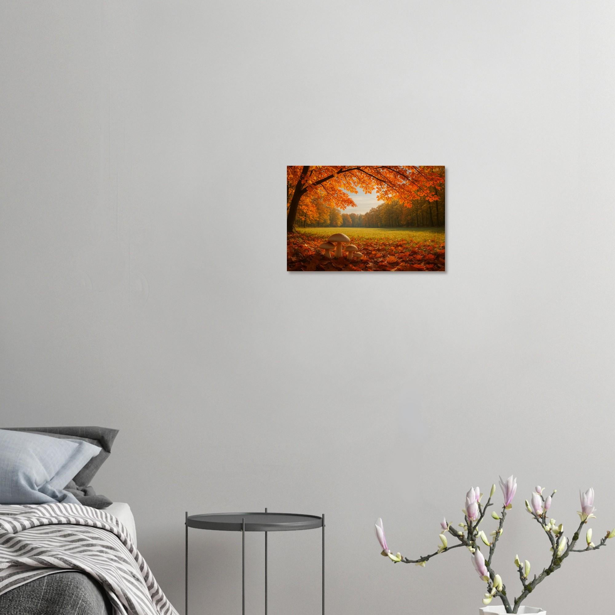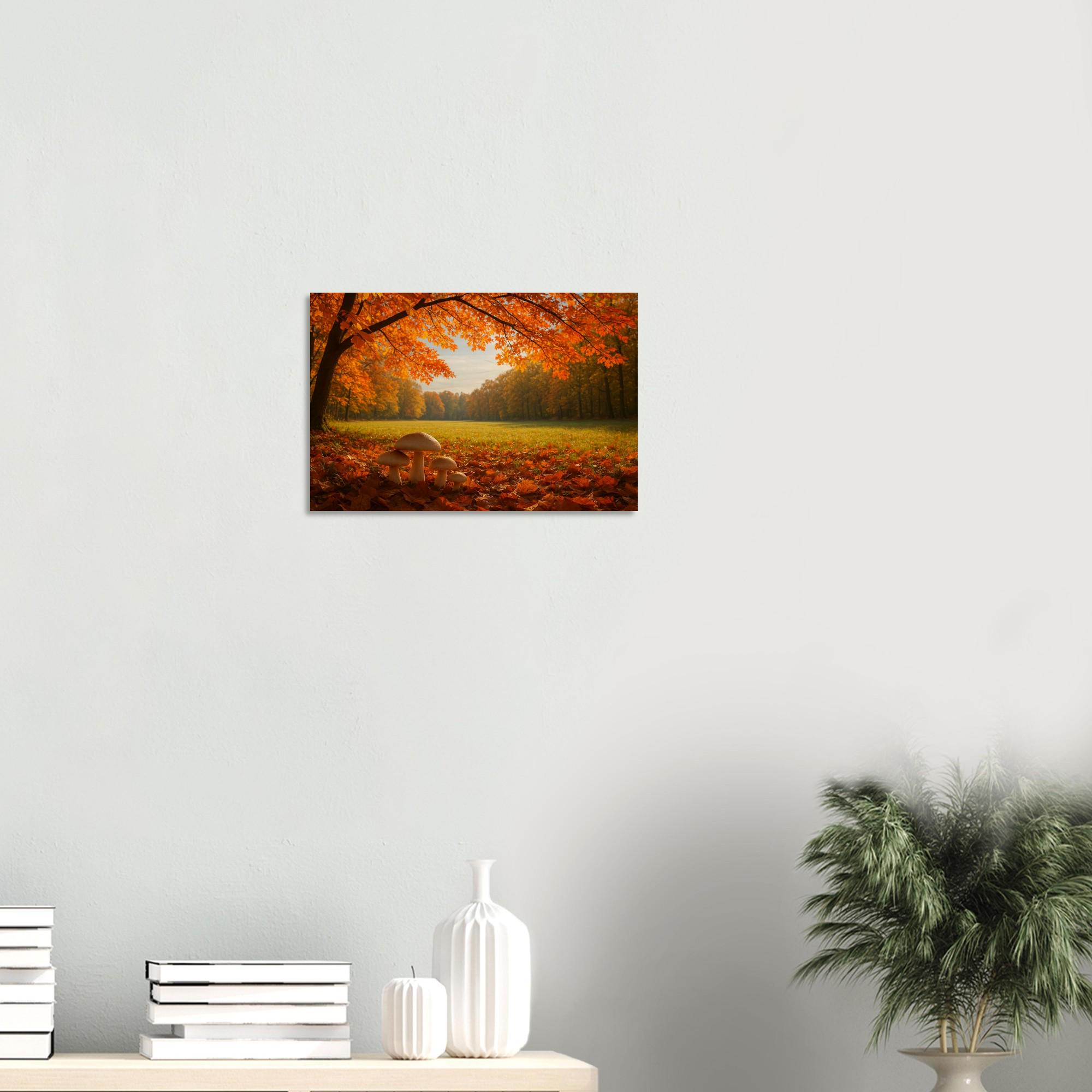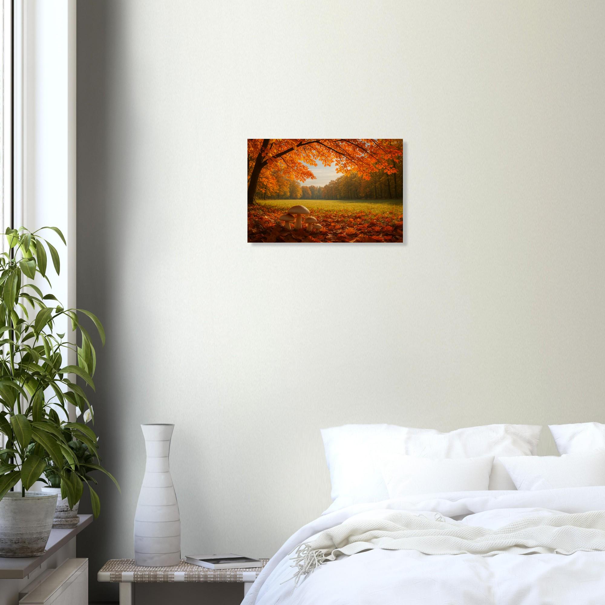 Autumn Forest Wall Art Print – Cozy Fall Landscape with Golden Trees & Mushrooms | Rustic Nature Decor | Woodland Canvas Gift