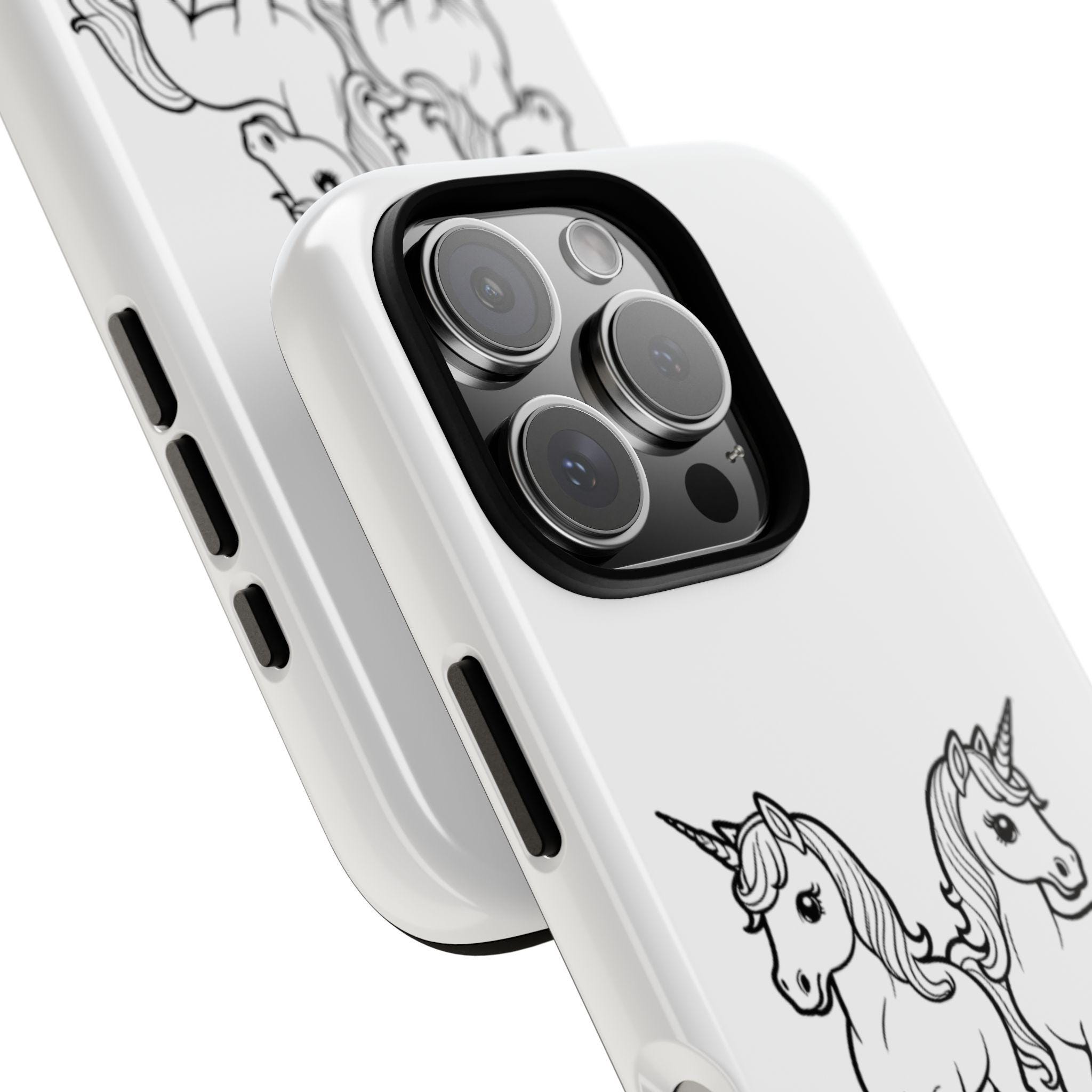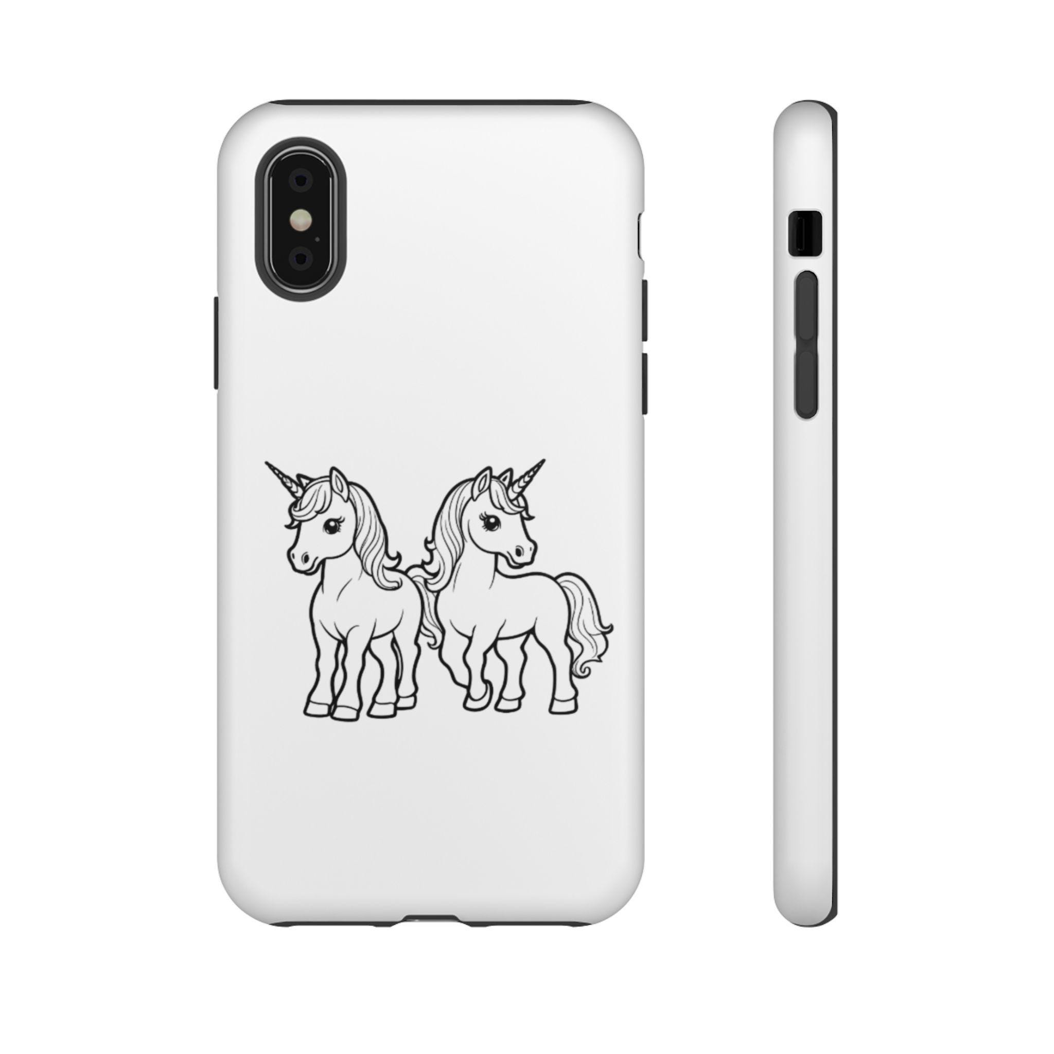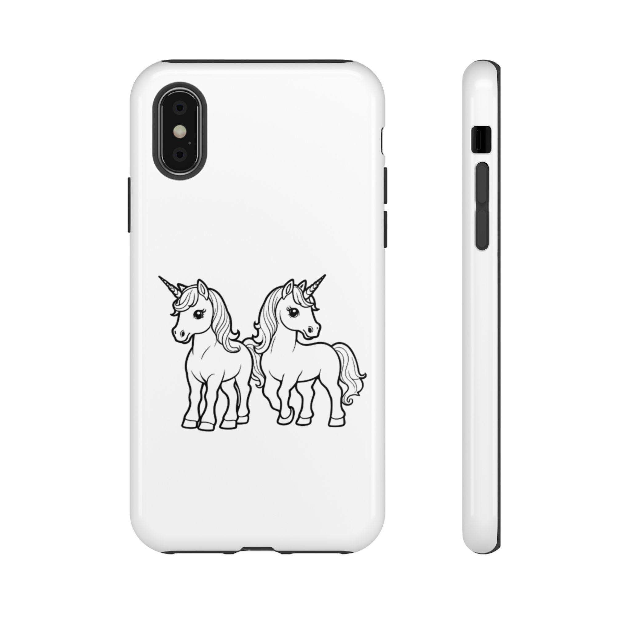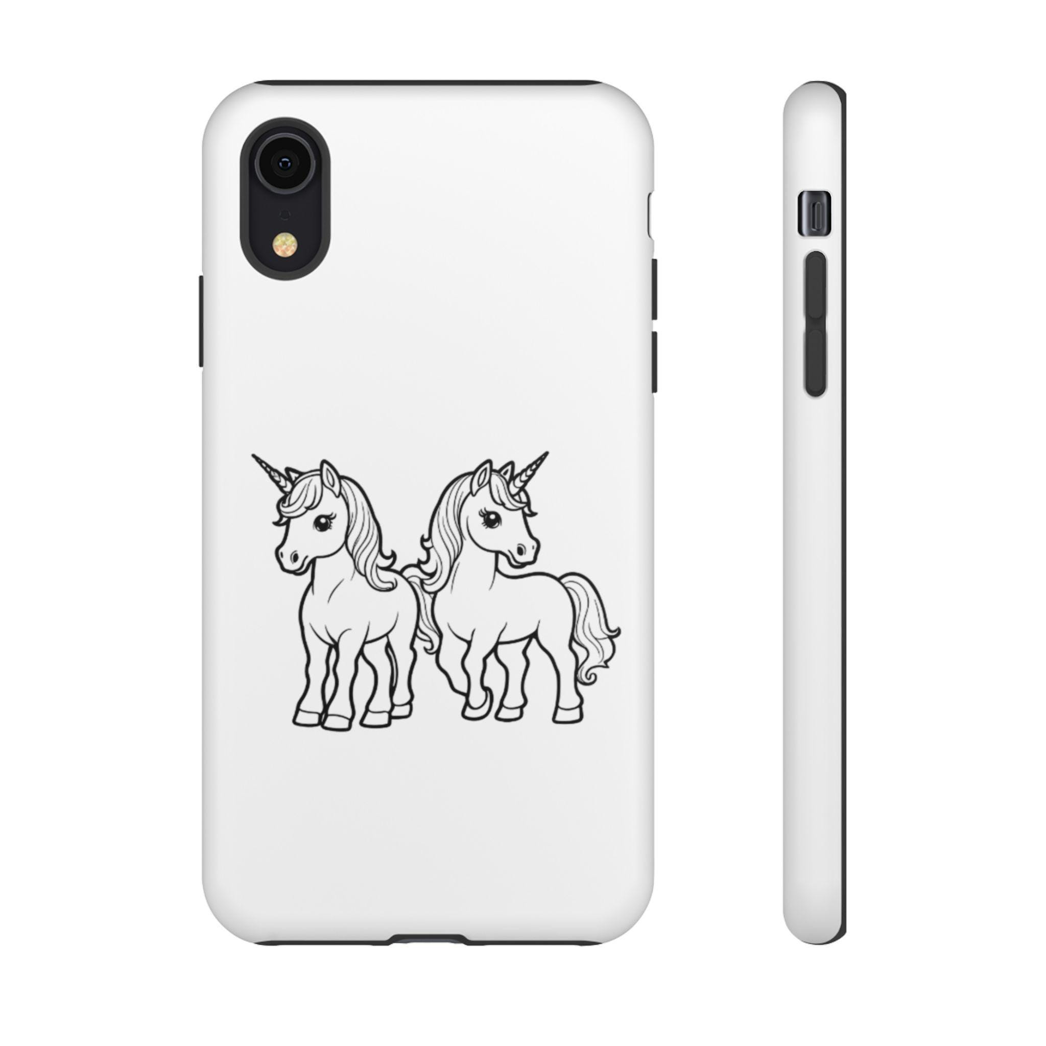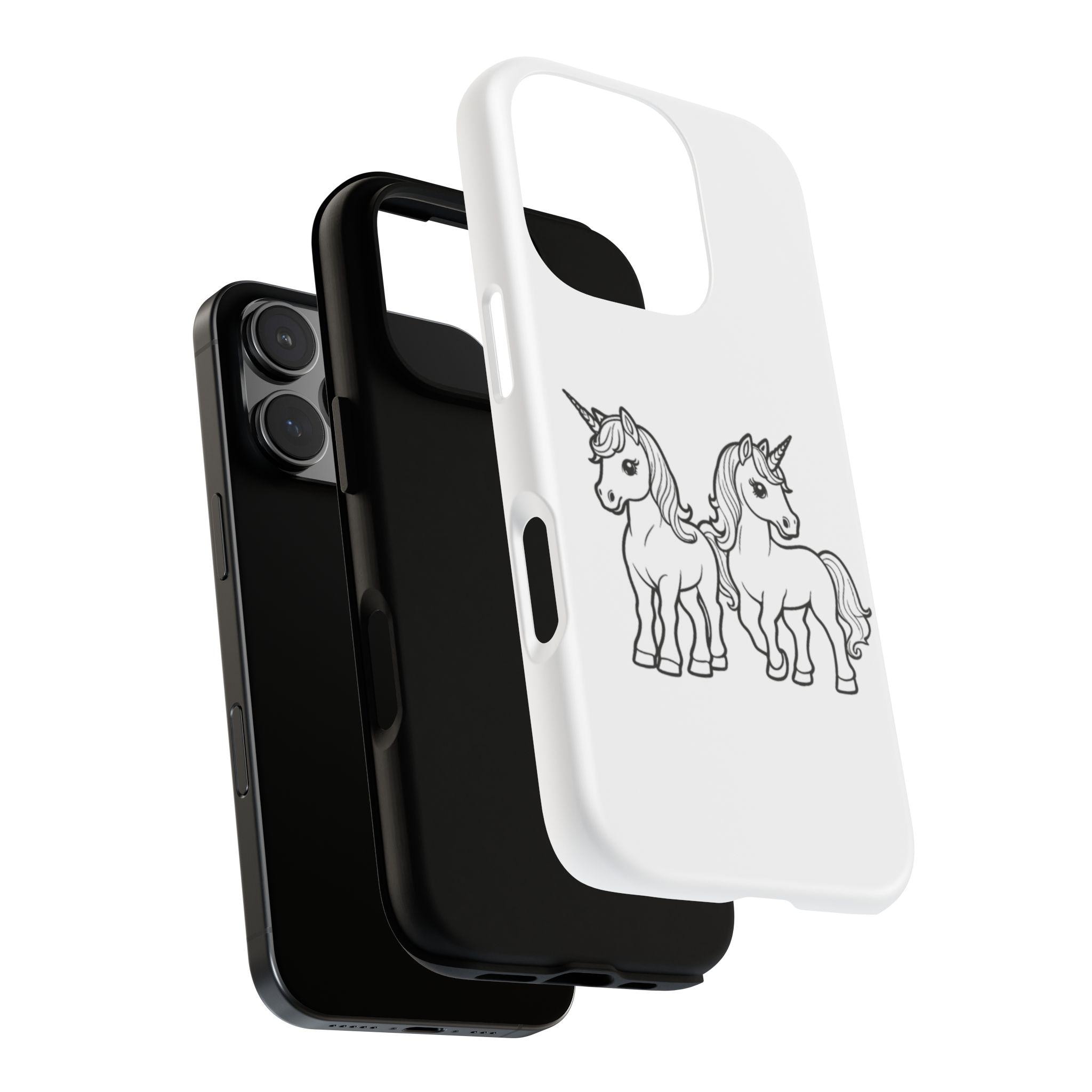 Give your phone a magical touch with this white unicorn phone case featuring two adorable unicorns, just like the design shown in the photo. The durable, impact-resistant shell helps protect your device from drops, bumps, and scratches, while the UV-resistant print keeps the artwork bright and crisp over time.